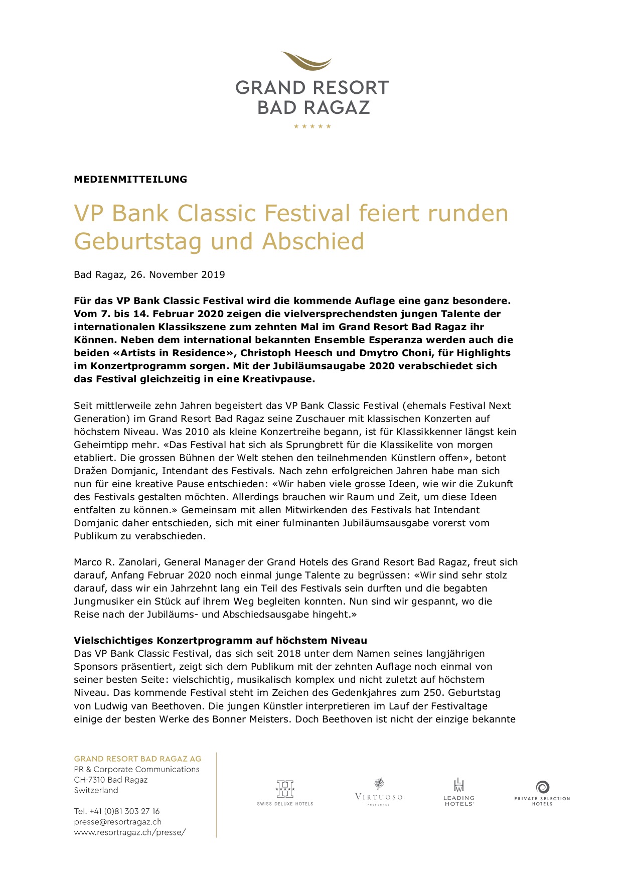 VP Bank Classic Festival feiert runden Geburtstag und Abschied