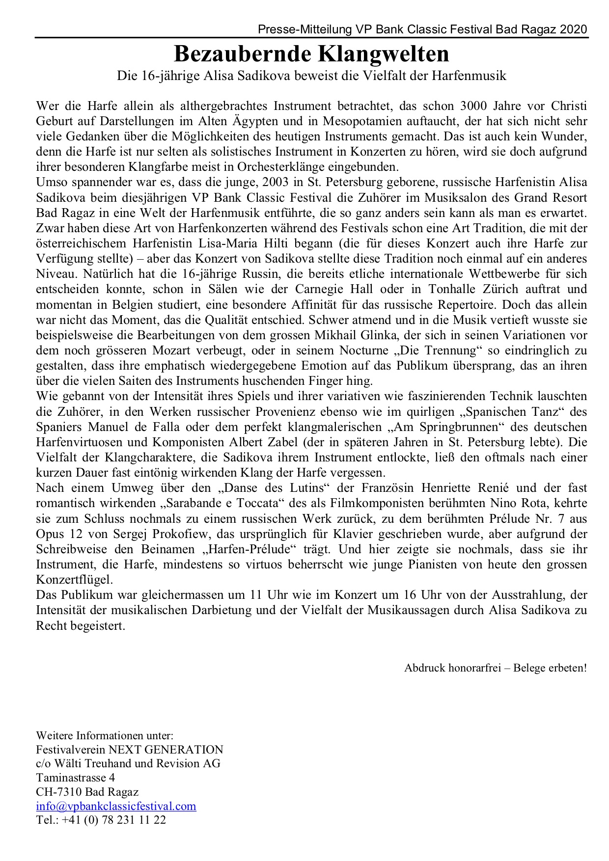 Medienmitteilung, Harfen-Konzert, 08.02.2020