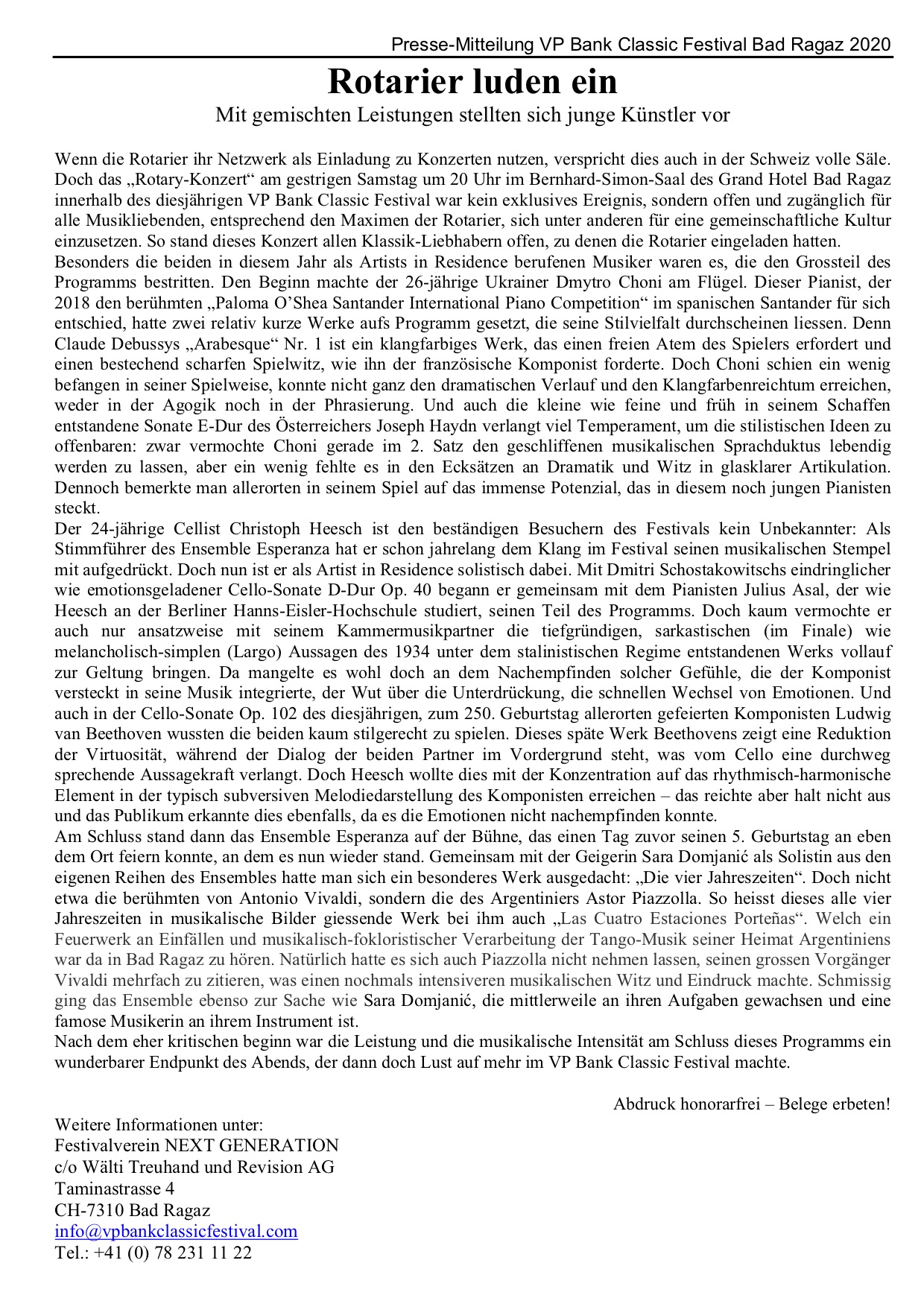 Medienmitteilung Rotary-Konzert, 08.02.2020