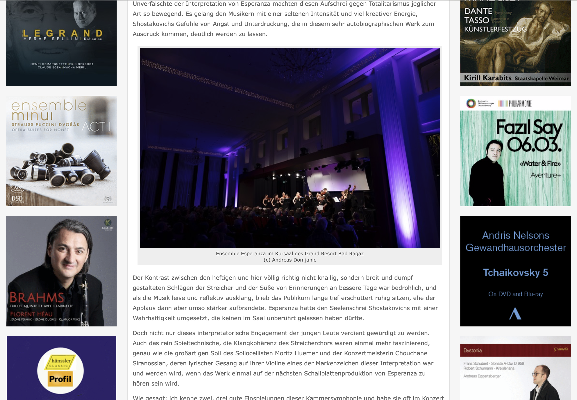 Bad Ragaz: Ensemble Esperanza legt die Messlatte höher und sorgt für Nachhaltigkeit